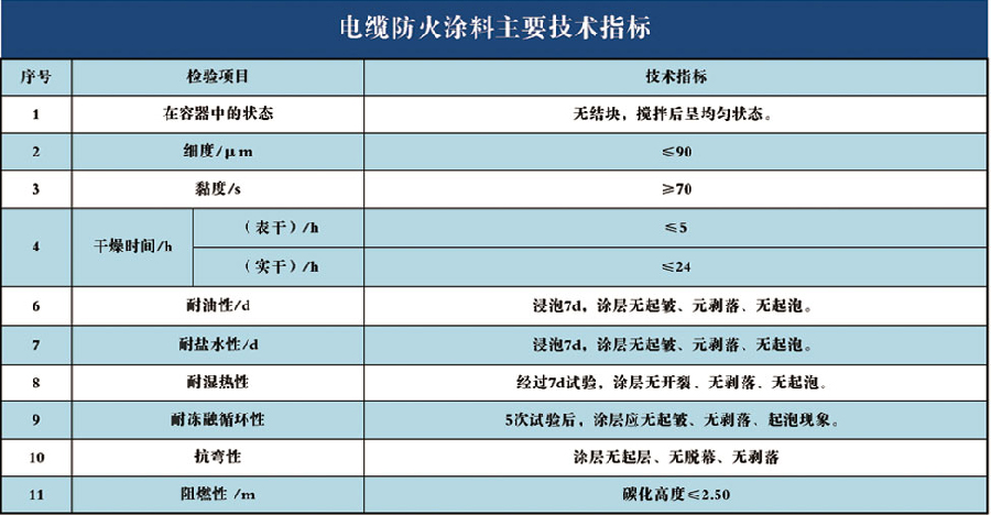 ②喷涂施工时,喷涂压力应调至0.4MPa左右。涂料使用前应搅拌均匀,喷涂应不流坠。涂装时,首道刷涂厚度宜控制在0.1mm以内,以盖住电缆基面即可。